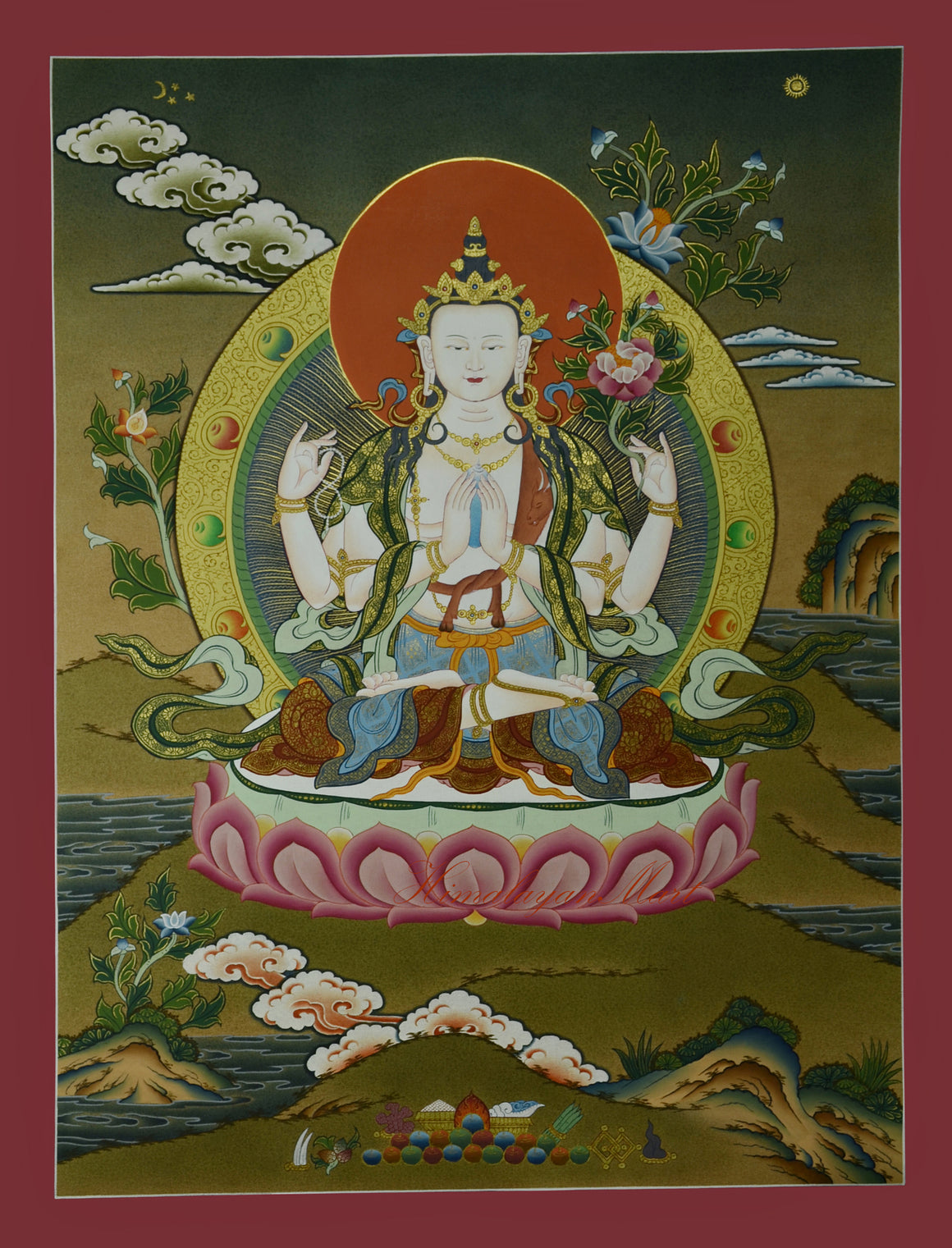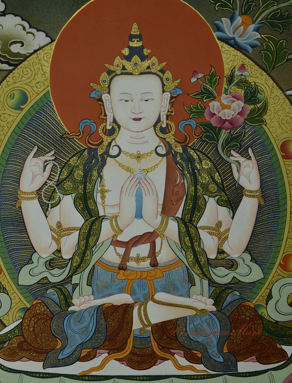 Chenrezig Scroll Painting | Avalokiteshvara Thangka | Tibetan Ritual Art from Nepal