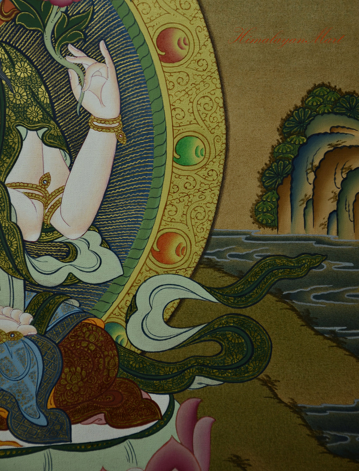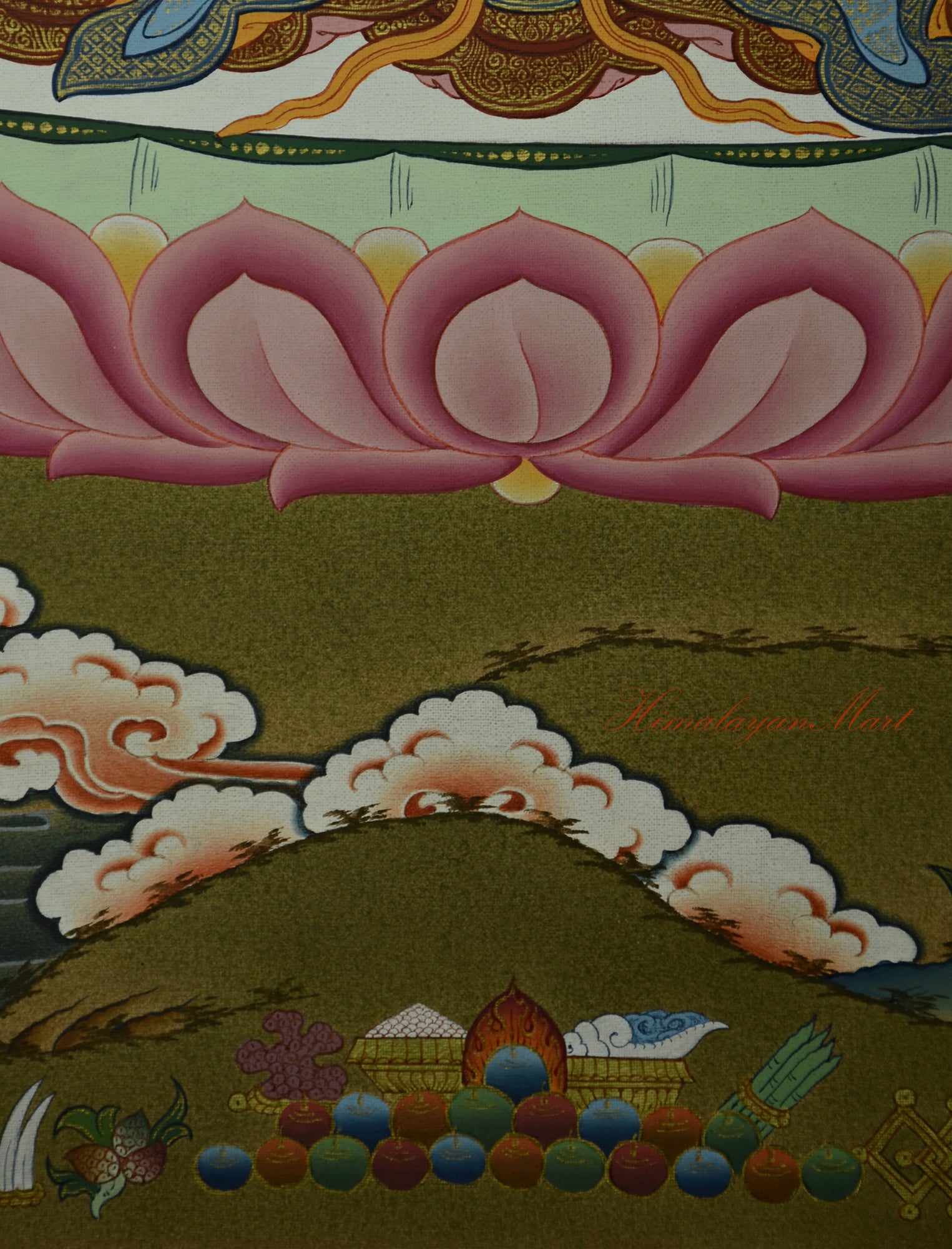Silk Brocade Framing: This Thangka comes without traditional brocade framing but can be custom-framed upon request. We provide diverse Tibetan silk brocades in unique colors, textures, and traditional woven designs. A silk brocade frame enhances your Thangka’s appearance and completes its sacred presentation. Prices starts from $ 45 to $ 250, depending on design and fabric quality. Please allow 3–5 business days for framing services to be completed. Visit our brocade section to explore available styles and customization options. For help, email us at info@himalayanmart.com. We are happy to assist you in choosing the perfect brocade. A well-matched brocade adds spiritual depth and cultural richness to your sacred artwork, making it truly complete.