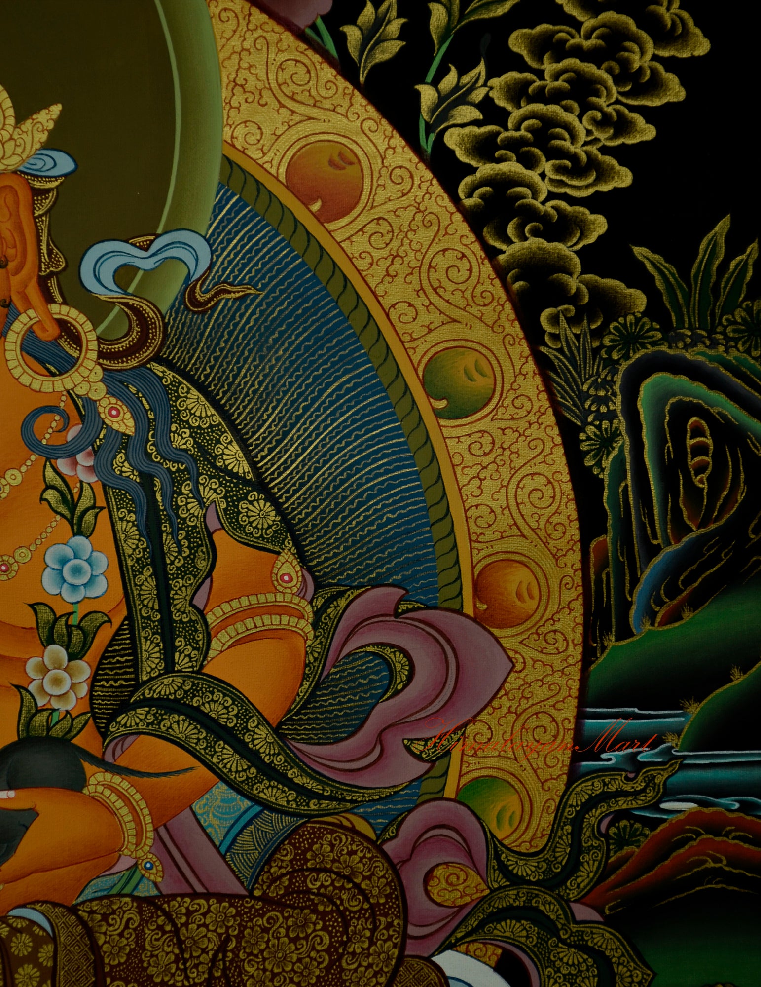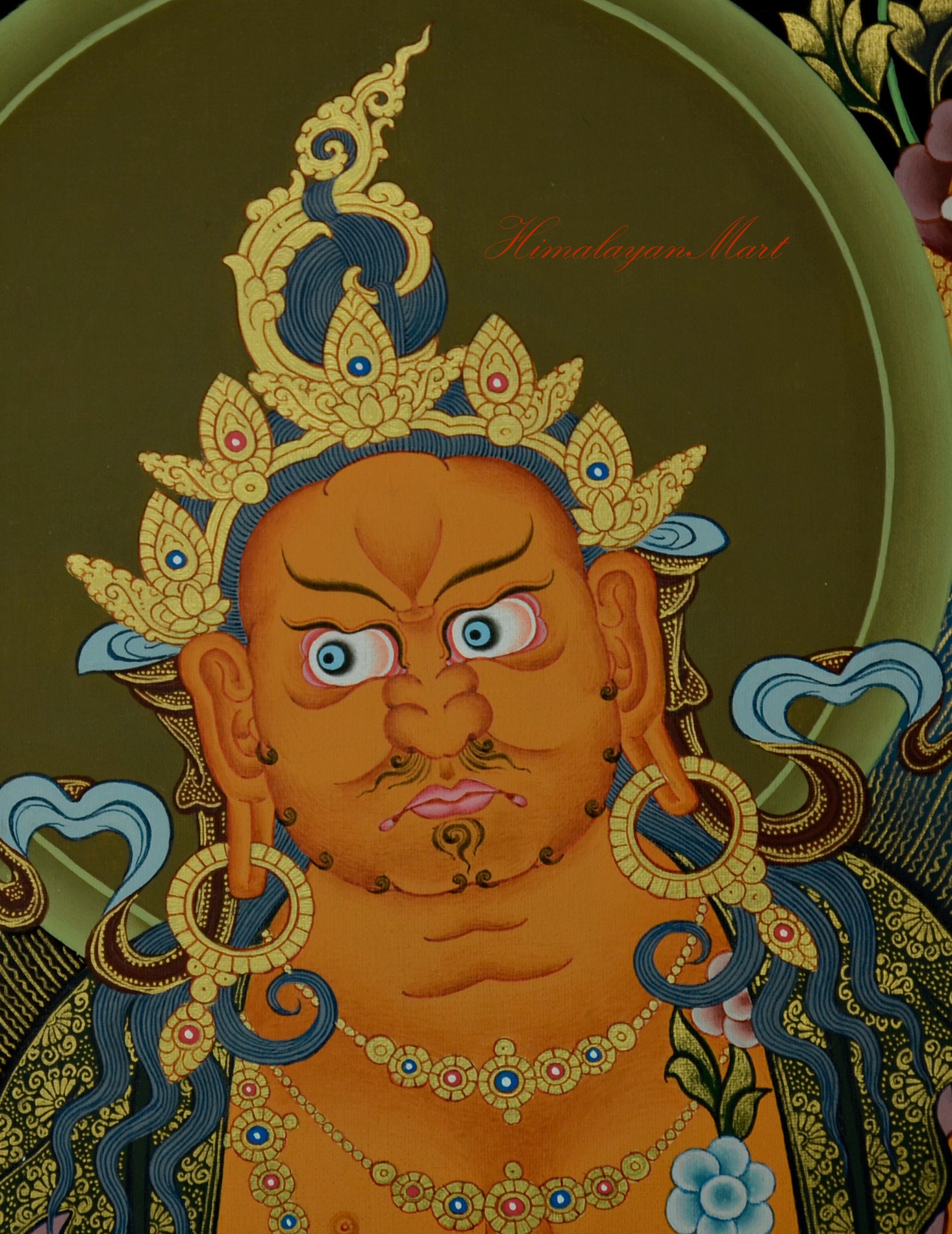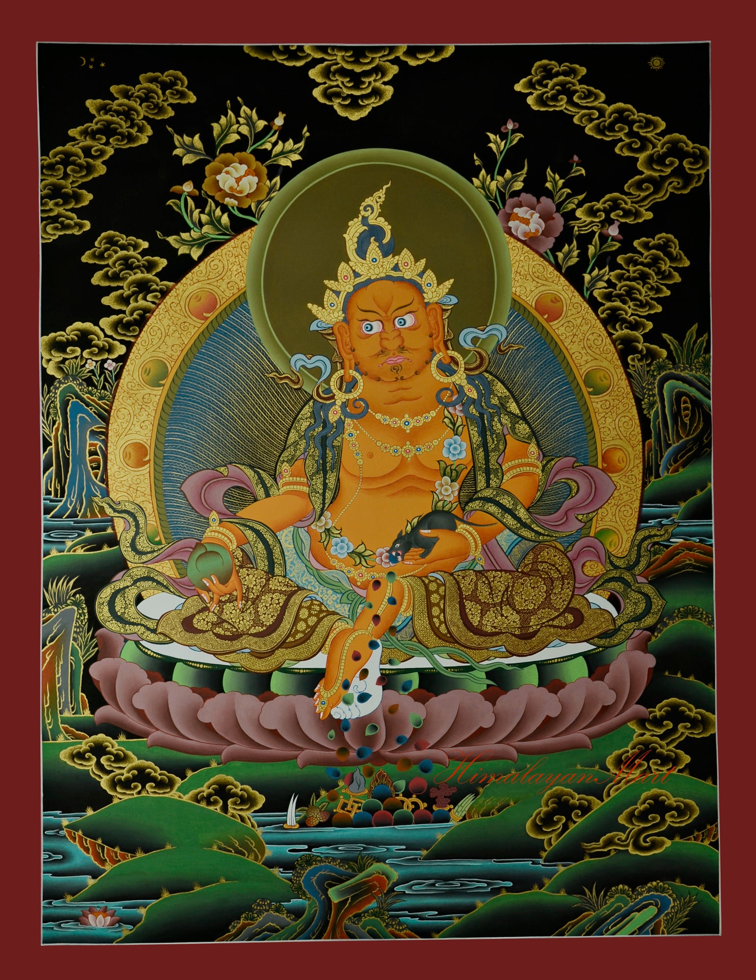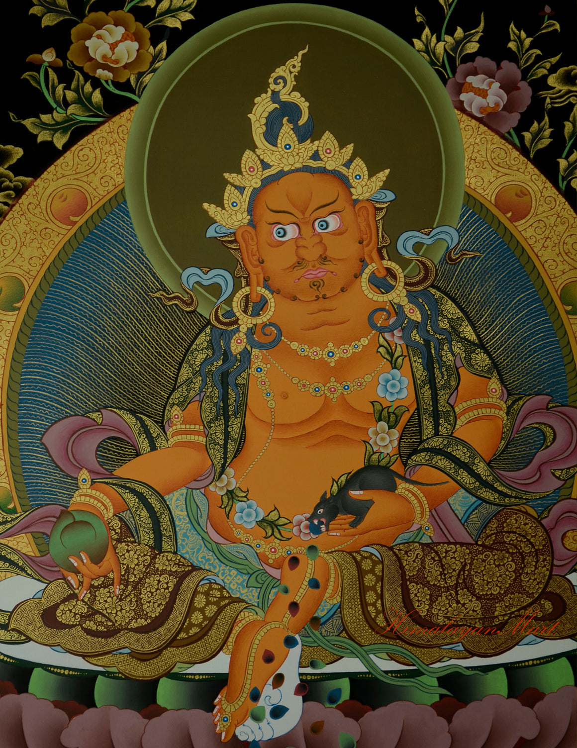 Dzambhala Tibetan Thangka – Hand-Painted with Vibrant Acrylics and 24K Gold on Cotton Canvas