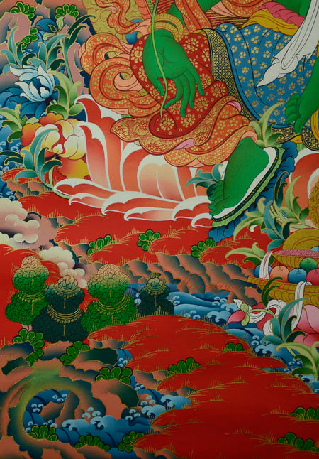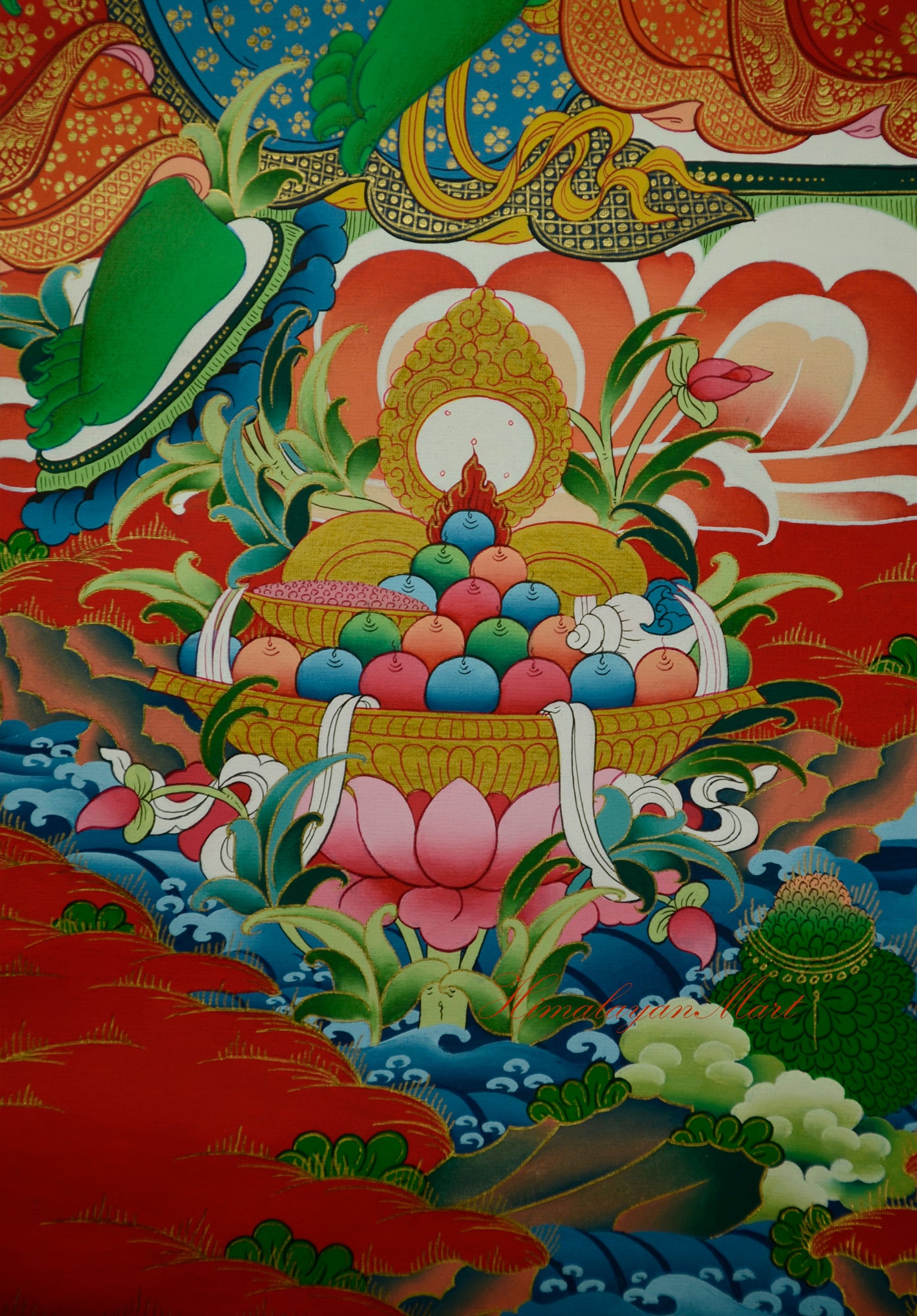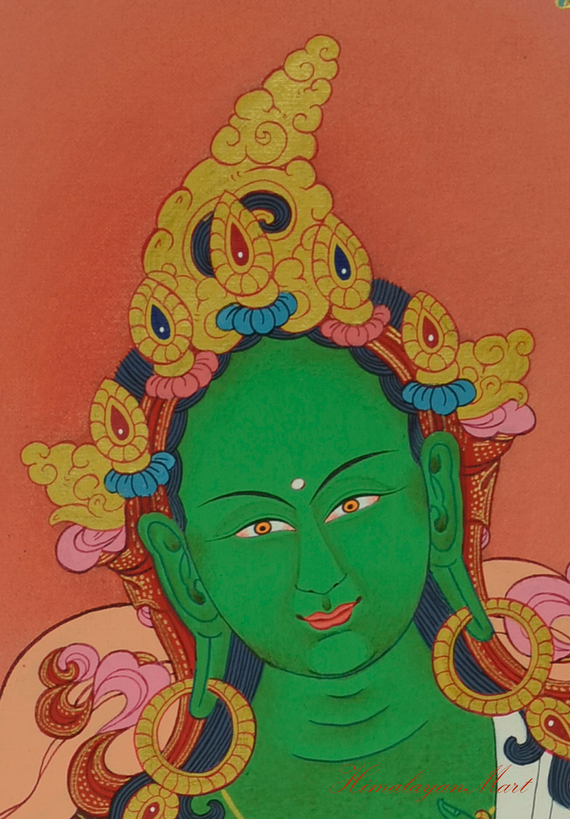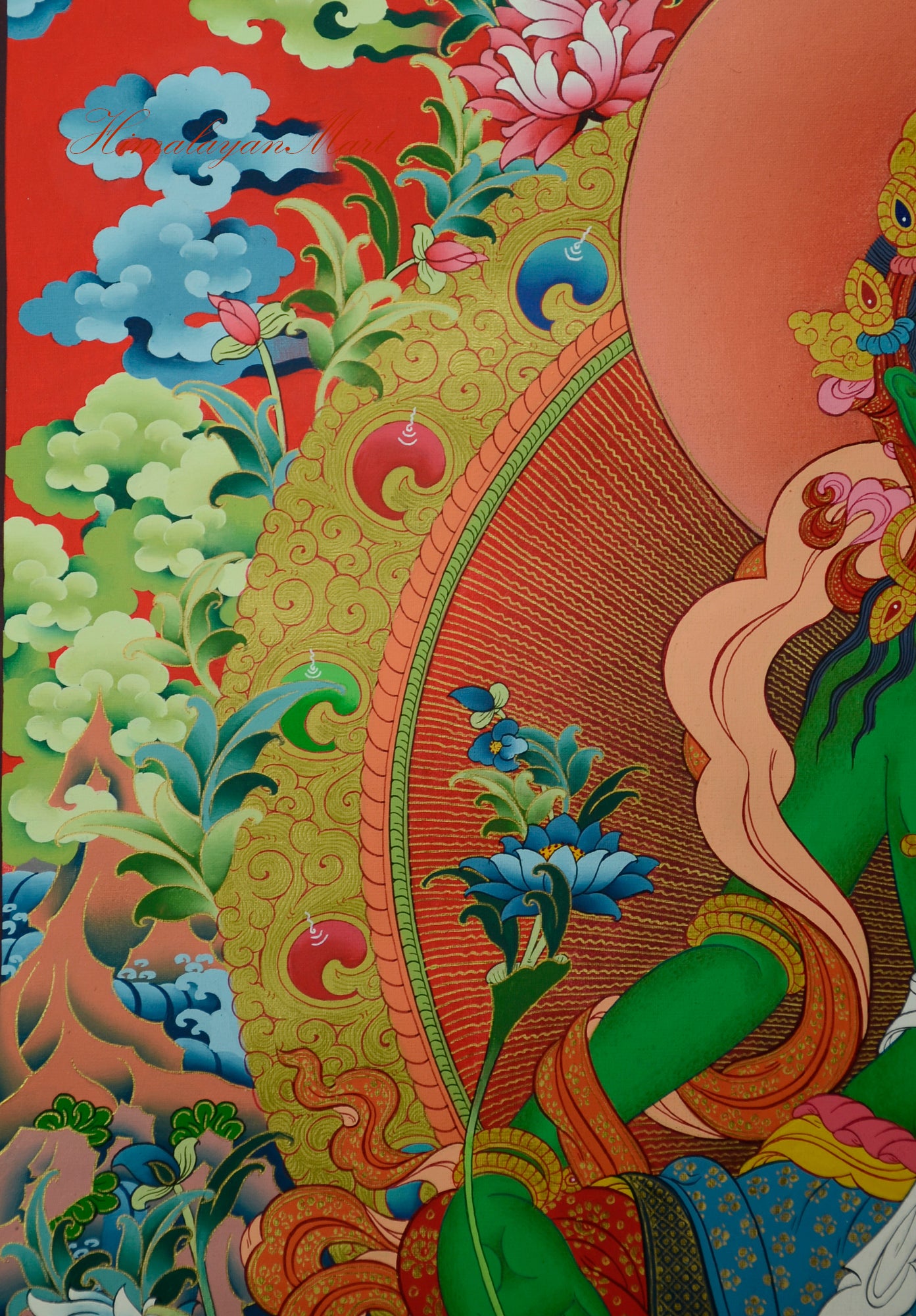 Hand-Painted Green Tara Thangka – Hand-Painted Tibetan Scroll Painting from Nepal