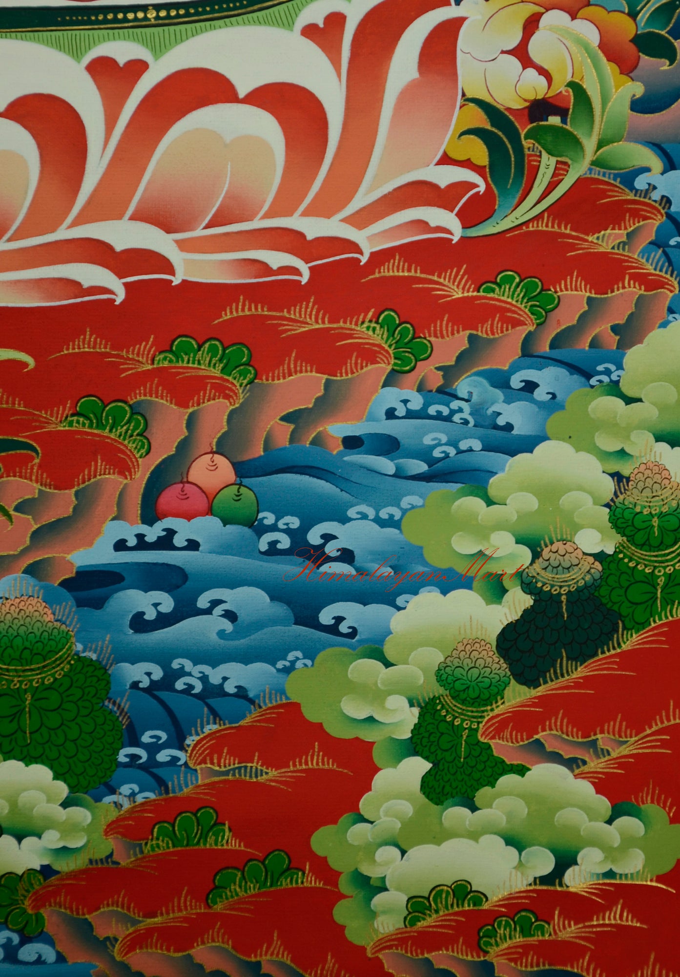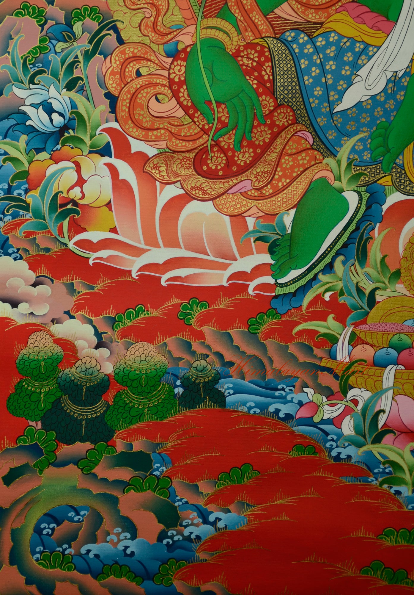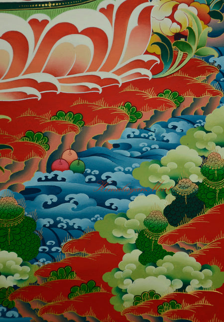 A finely crafted brocade frame not only complements the Thangka but also enhances its overall presentation and spiritual presence. It adds an elegant touch, making your artwork even more captivating and suitable for display in sacred or special spaces.