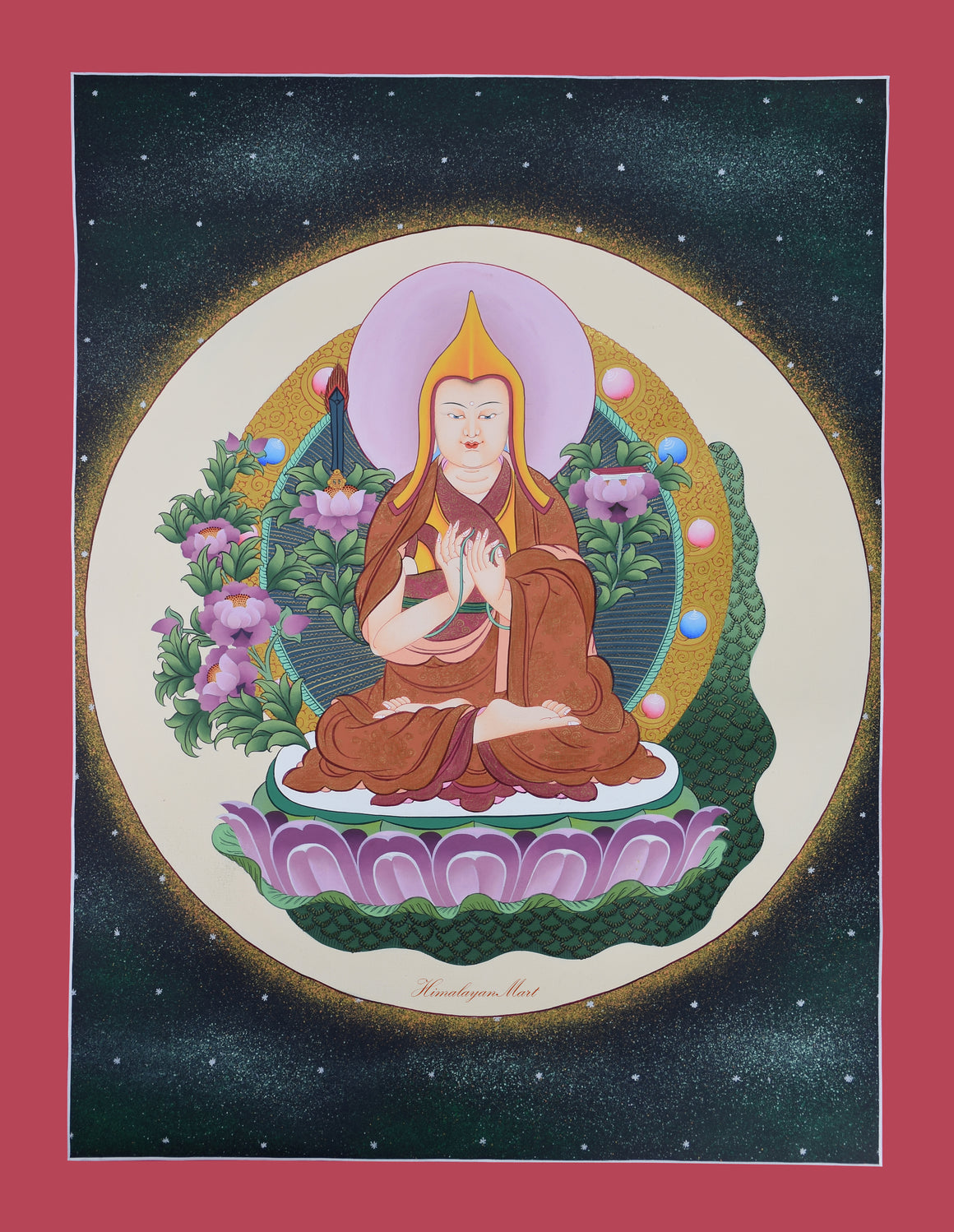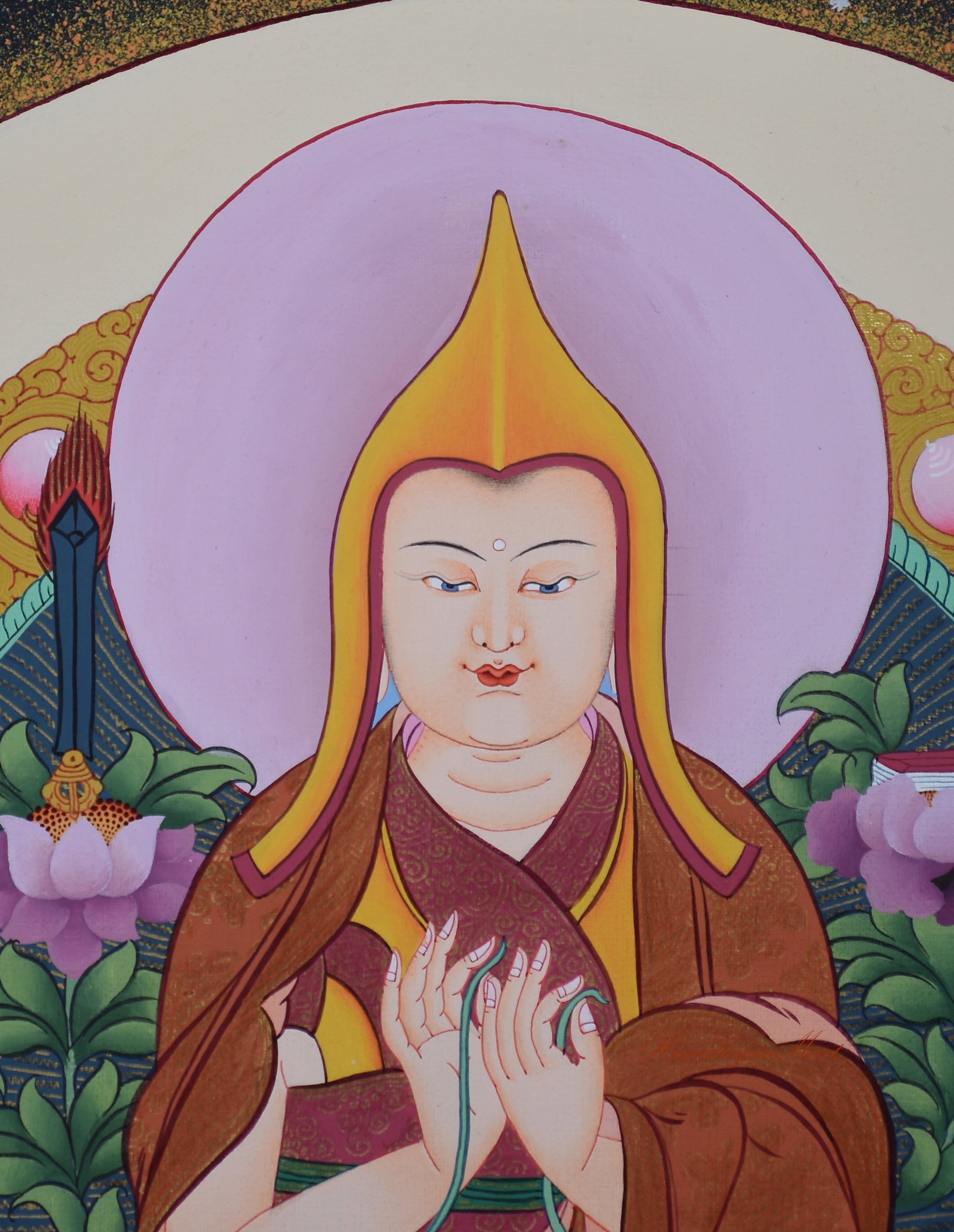 Je Tsongkhapa Thangka Painting – Spiritual Tibetan Artwork for Meditation
