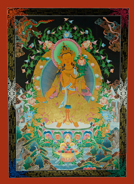 Care Instructions: To preserve the Thangka’s vibrant colors and radiant gold accents, keep it out of direct sunlight. Handle with clean, dry hands and gentle care to maintain its delicate details and enduring beauty.