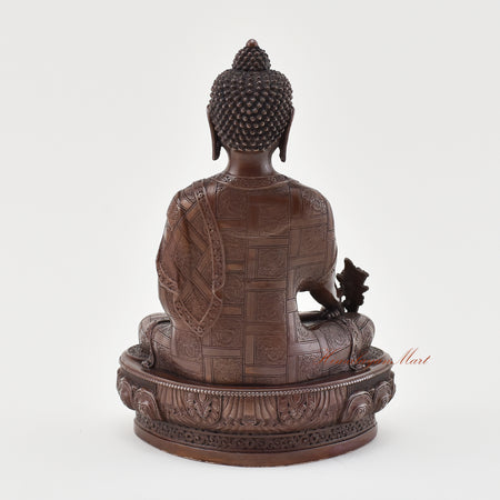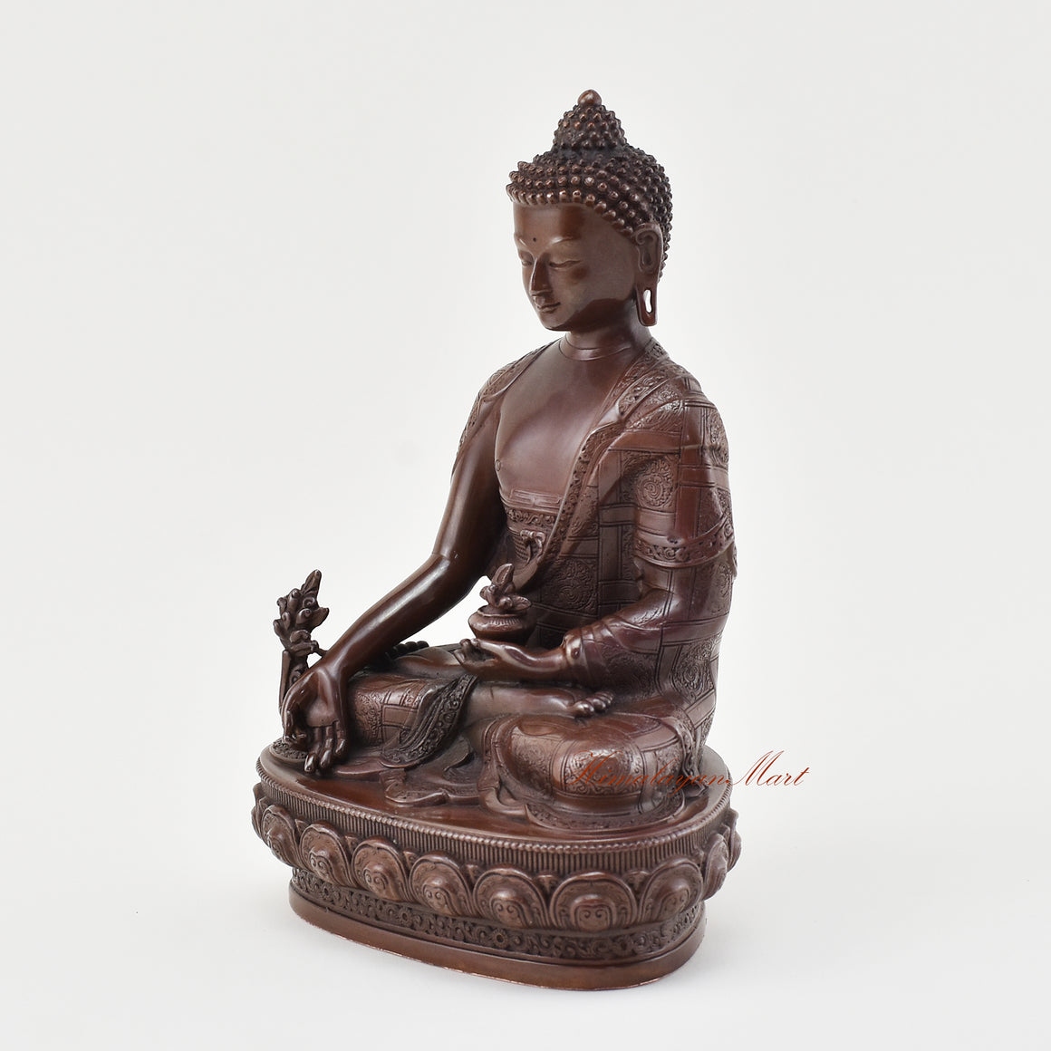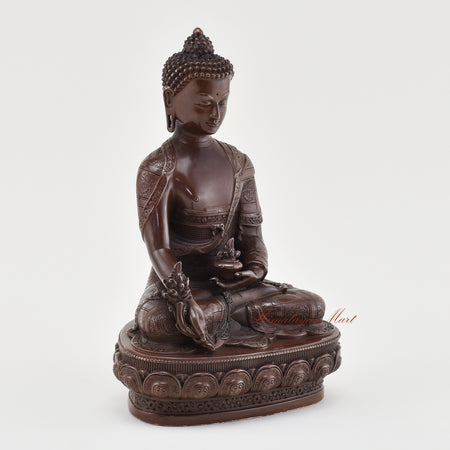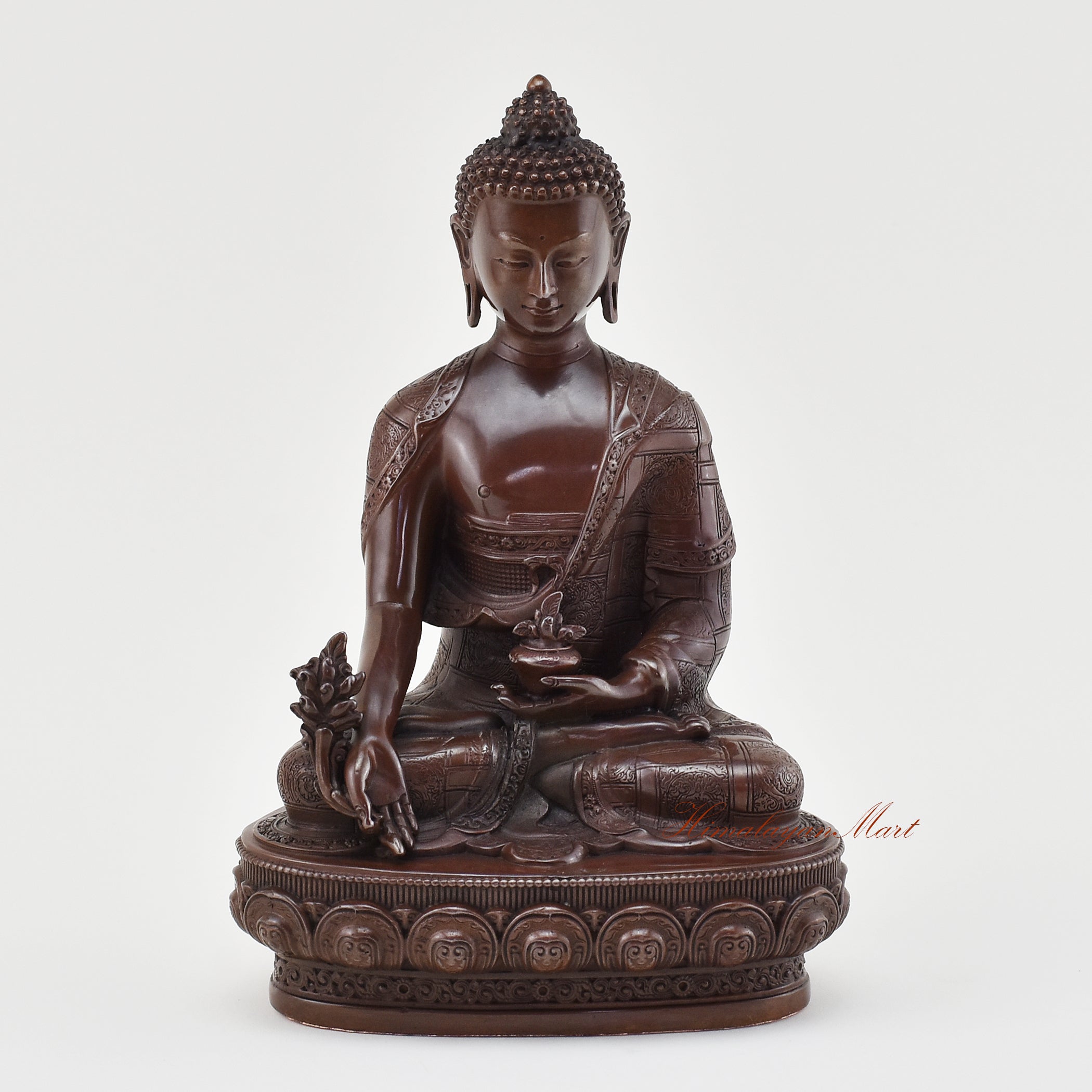 Medicine Buddha Figurine - Handcrafted Healing Icon in Oxidized Copper