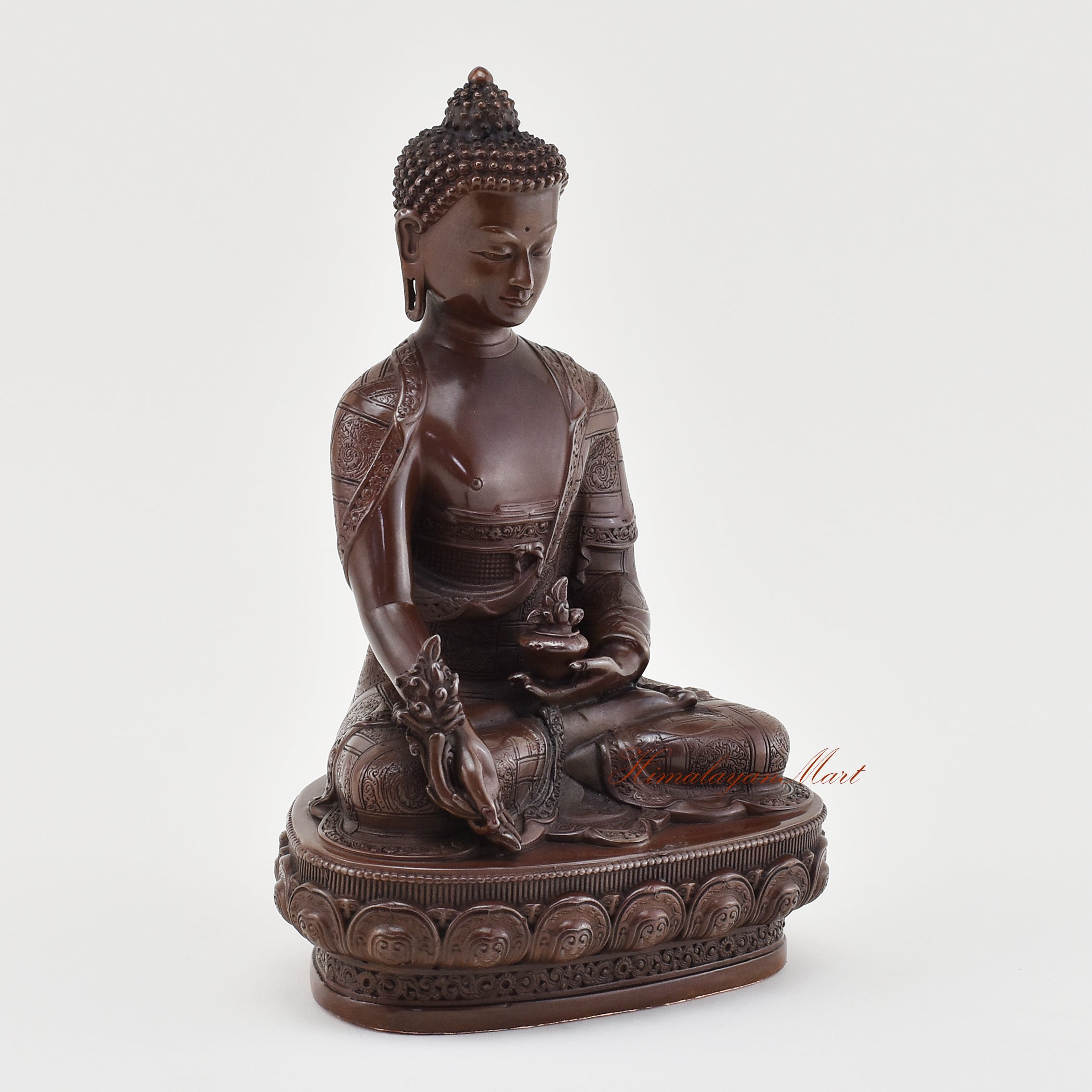 The statue features an artistic oxidation finish, creating a rich, antique patina. This traditional technique enhances depth while preserving sacred proportions. Every curve reflects authentic Tibetan Buddhist iconography. The Medicine Buddha's serene expression radiates compassion.