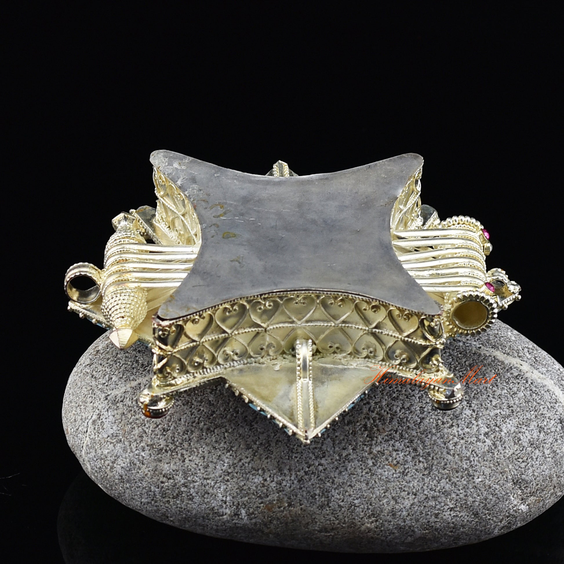 Crafted from silver-plated brass, this pendant radiates both durability and timeless elegance. The polished silver finish reflects light beautifully, enhancing its spiritual and artistic appeal. Each pendant is adorned with hand-set semiprecious stones, bringing vibrant energy and harmony to its sacred form. The prayer box locket opens, allowing you to place small mantras, protective relics, or personal blessings inside. This makes the Ghau both a spiritual amulet and a deeply personal talisman. In Tibetan culture, such lockets are worn to keep prayers and blessings close to the heart, offering comfort and strength during life’s journey.