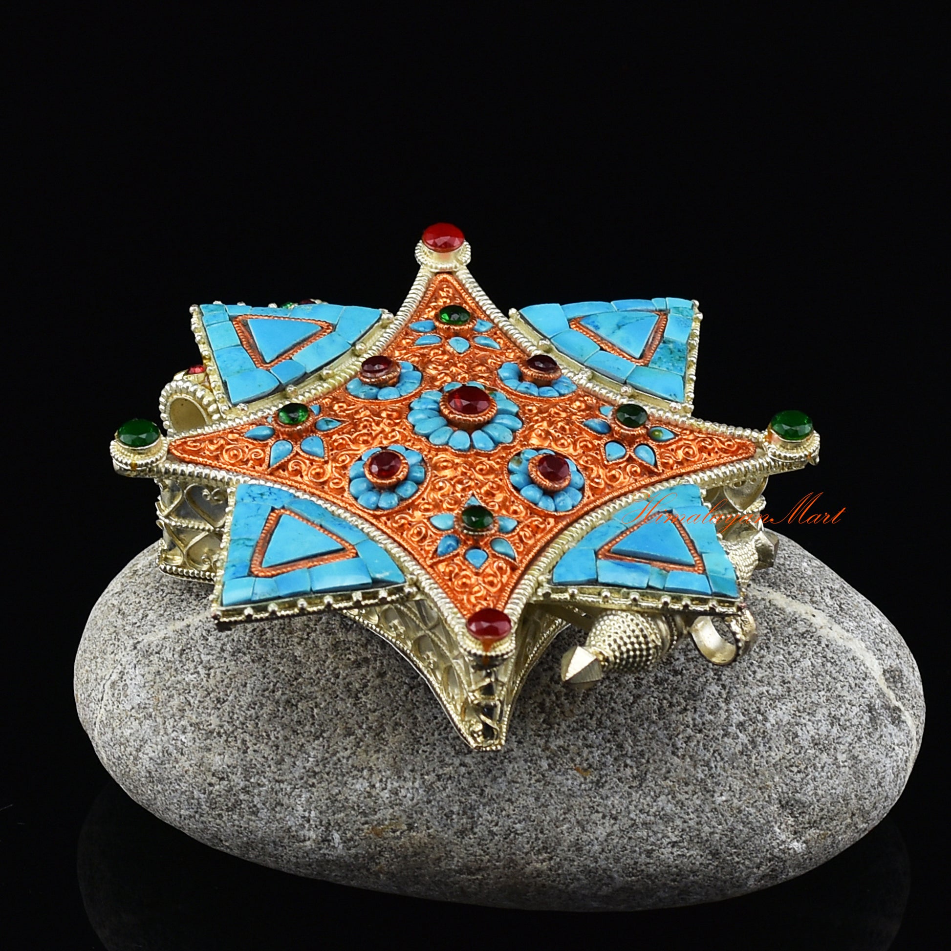 The artistry reflects the devotion of skilled artisans who honor centuries-old traditions. Every curve and detail is shaped with care, creating a balance of beauty, symbolism, and spiritual intent. The hand-set stones add not only vibrant color but also energetic resonance, enriching the pendant with a sense of sacred presence. More than just a decorative piece, this sacred pendant holds space for peace and spiritual clarity. Designed as a Buddhist amulet, it gently supports daily mindfulness, meditation, and quiet reflection. Whether you wear it yourself or offer it as a meaningful gift, it reflects ancient traditions with graceful simplicity. The Ghau pendant invites a sense of grounding, calm awareness, and connection to your inner journey.