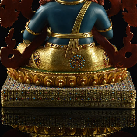 The Namtoshe Statue is a magnificent piece of sacred Himalayan art rooted in Buddhist tradition. Made from copper alloy using the ancient Lost Wax Method, it ensures exceptional detail and durability. The statue is finely hand-carved with intricate carvings of winding vines and sacred Buddhist symbols.