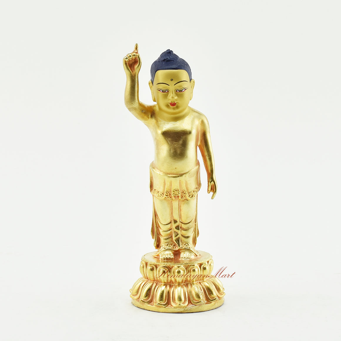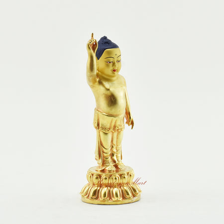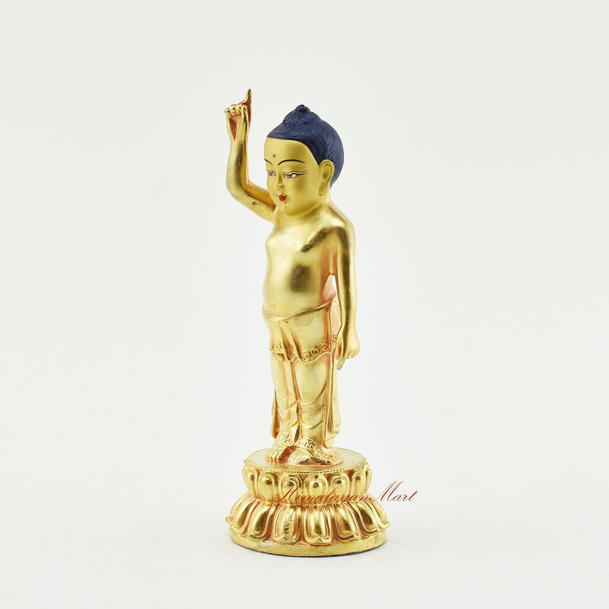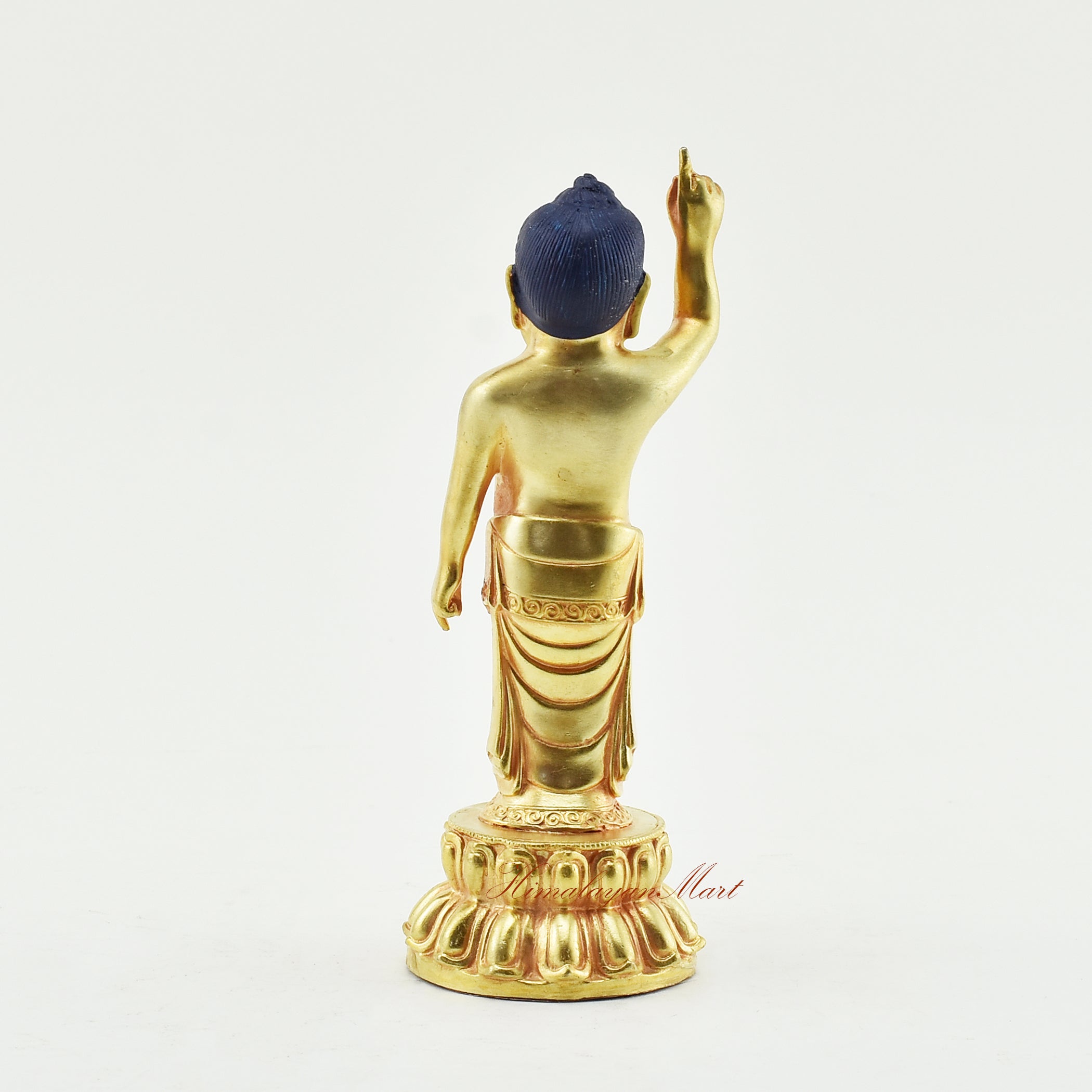This exquisite Standing Baby Buddha statue depicts the historical infant Siddhartha Gautama, capturing his miraculous first moments. Meticulously cast in premium copper alloy using the ancient lost wax method, every detail reflects supreme craftsmanship.