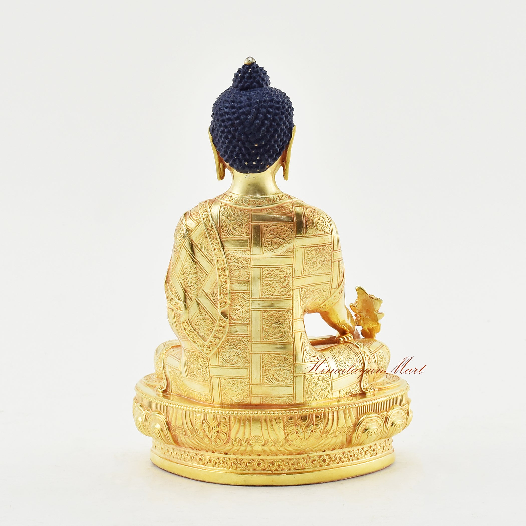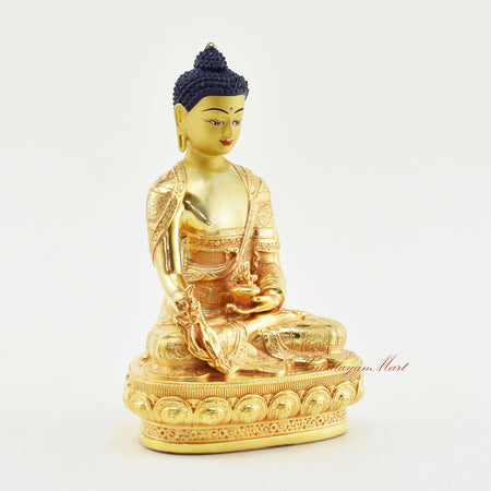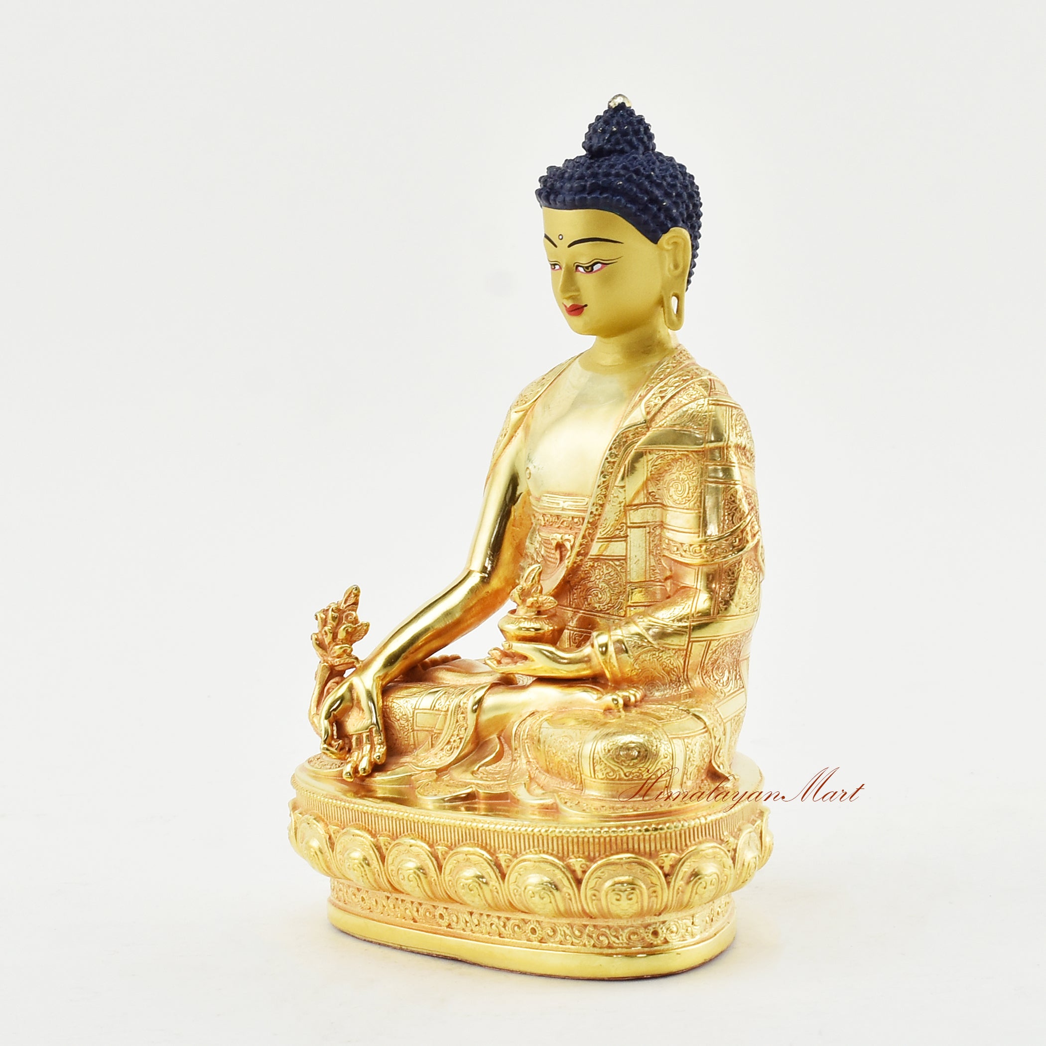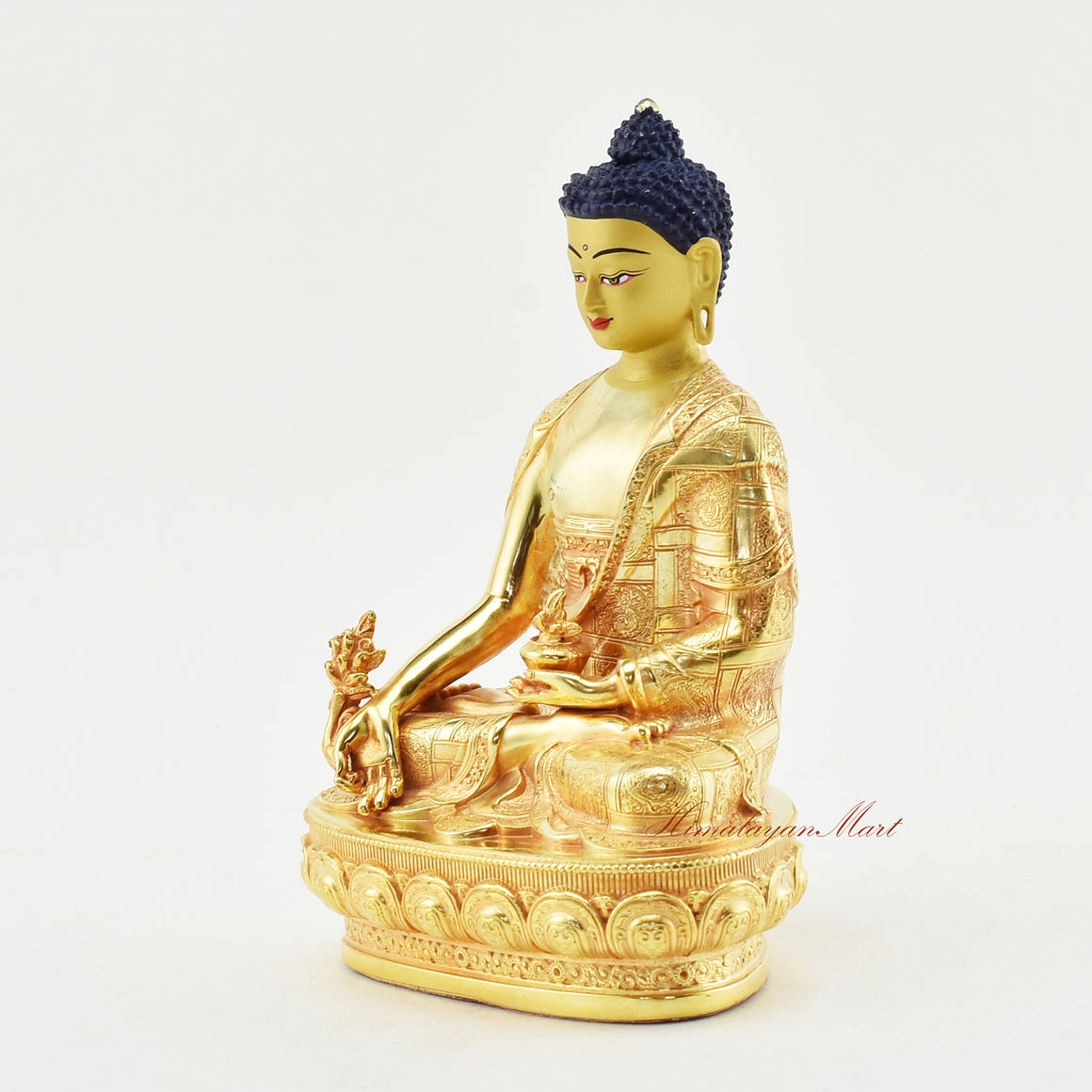 The statue features luxurious gold plating with a radiant finish. Its serene face is hand-painted with real gold powder, enhancing sacred beauty. Every element reflects authentic Tibetan Buddhist craftsmanship. Perfect for healing altars or meditation spaces.