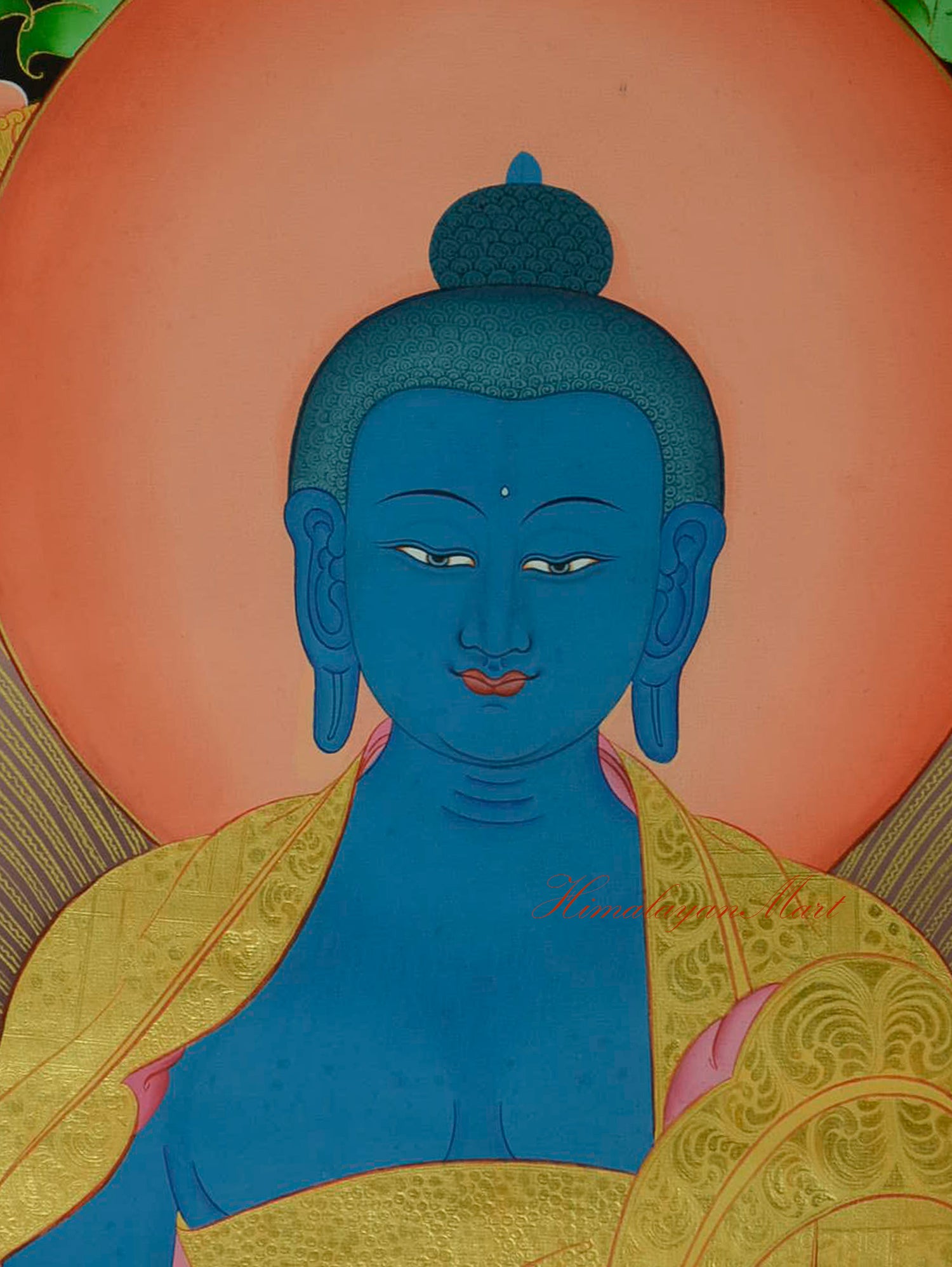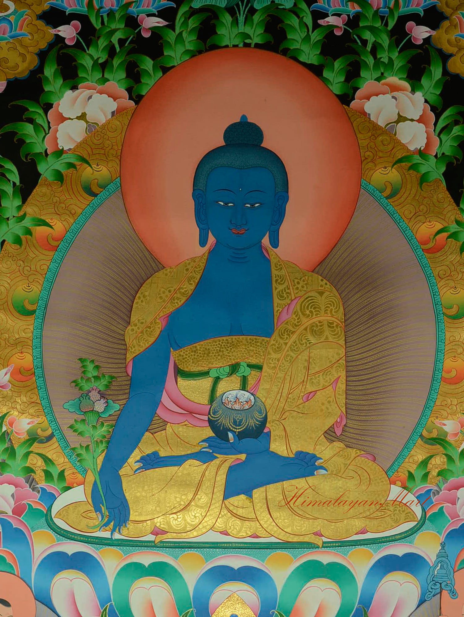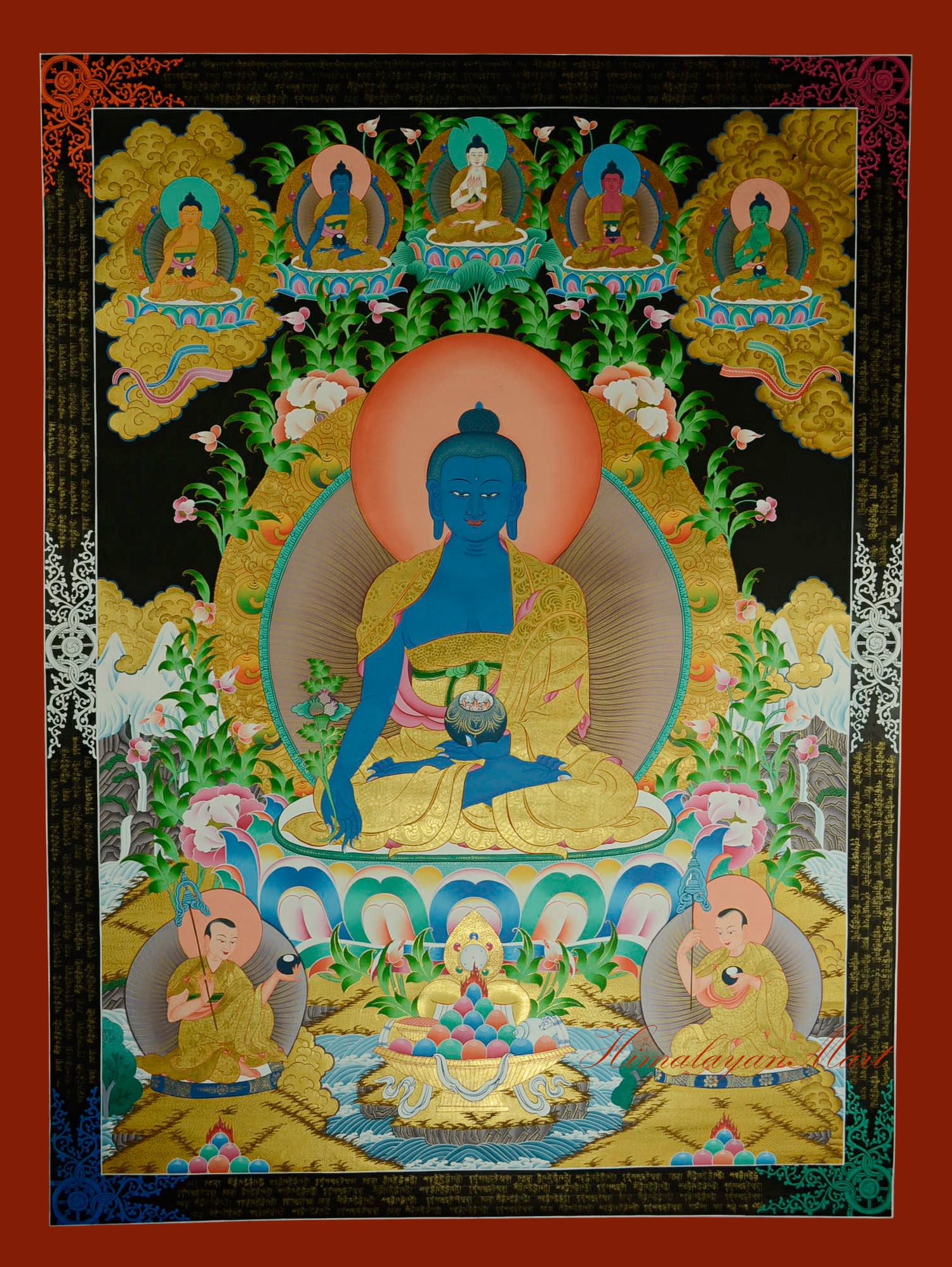 Tibetan Medicine Buddha Thangka - Sacred Painting of Healing Buddha Bhaisajyaguru