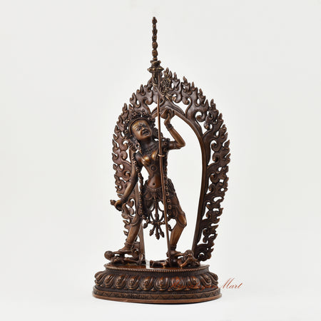 Vajrayogini, a revered Tantric Buddhist deity, symbolizes wisdom and transformation. This statue captures her dynamic posture and fierce expression perfectly. Ideal for meditation, altars, or spiritual collections, it radiates sacred energy. The intricate detailing includes traditional ornaments and symbolic attributes. Each element reflects deep Tibetan Buddhist iconography.