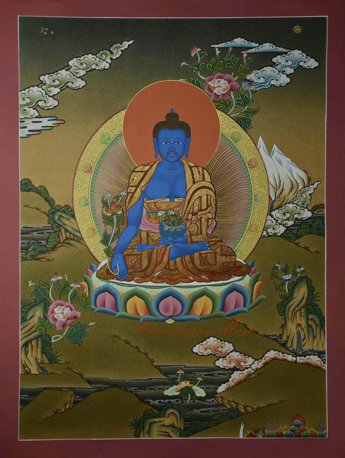 Vajrayana Medicine Buddha Painting – Traditional Tibetan Sacred Artwork