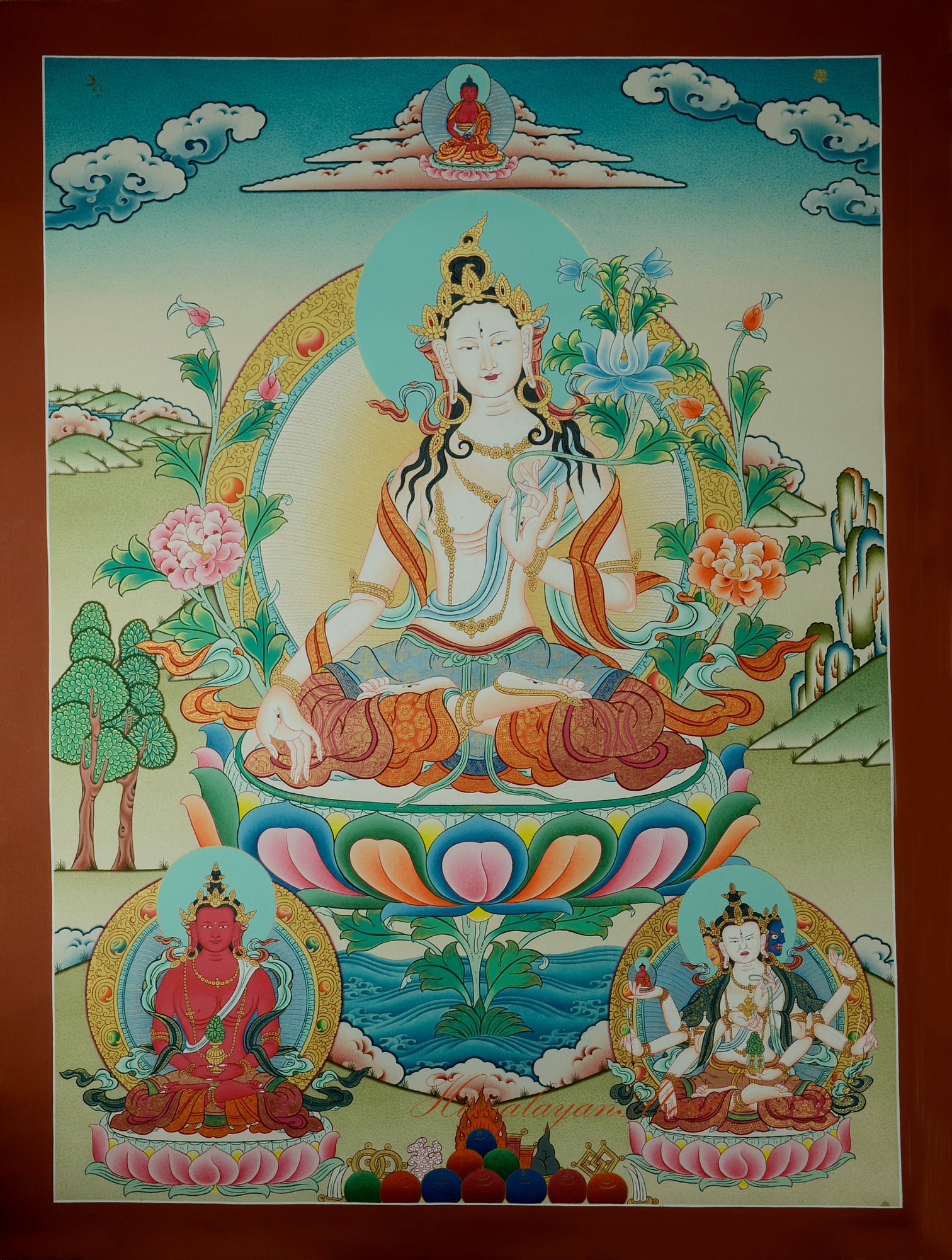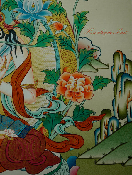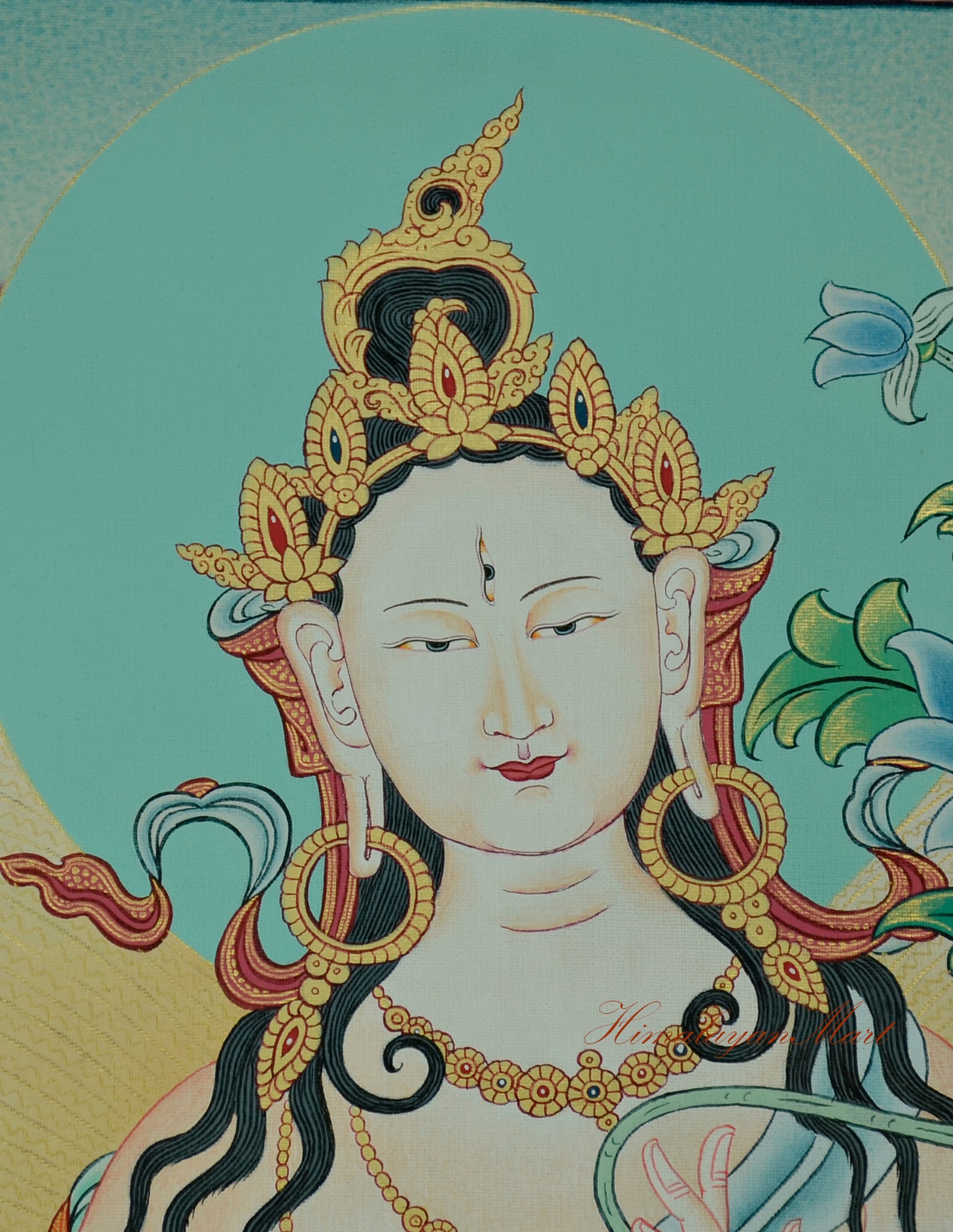 More than artwork – a bridge to enlightenment. White Tara's serene presence graces homes and hearts. Own this sacred masterpiece today.