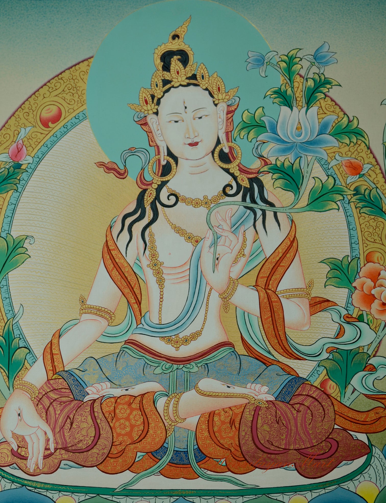White Tara Scroll Thangka - Hand-Painted Tibetan Buddhist Art