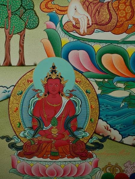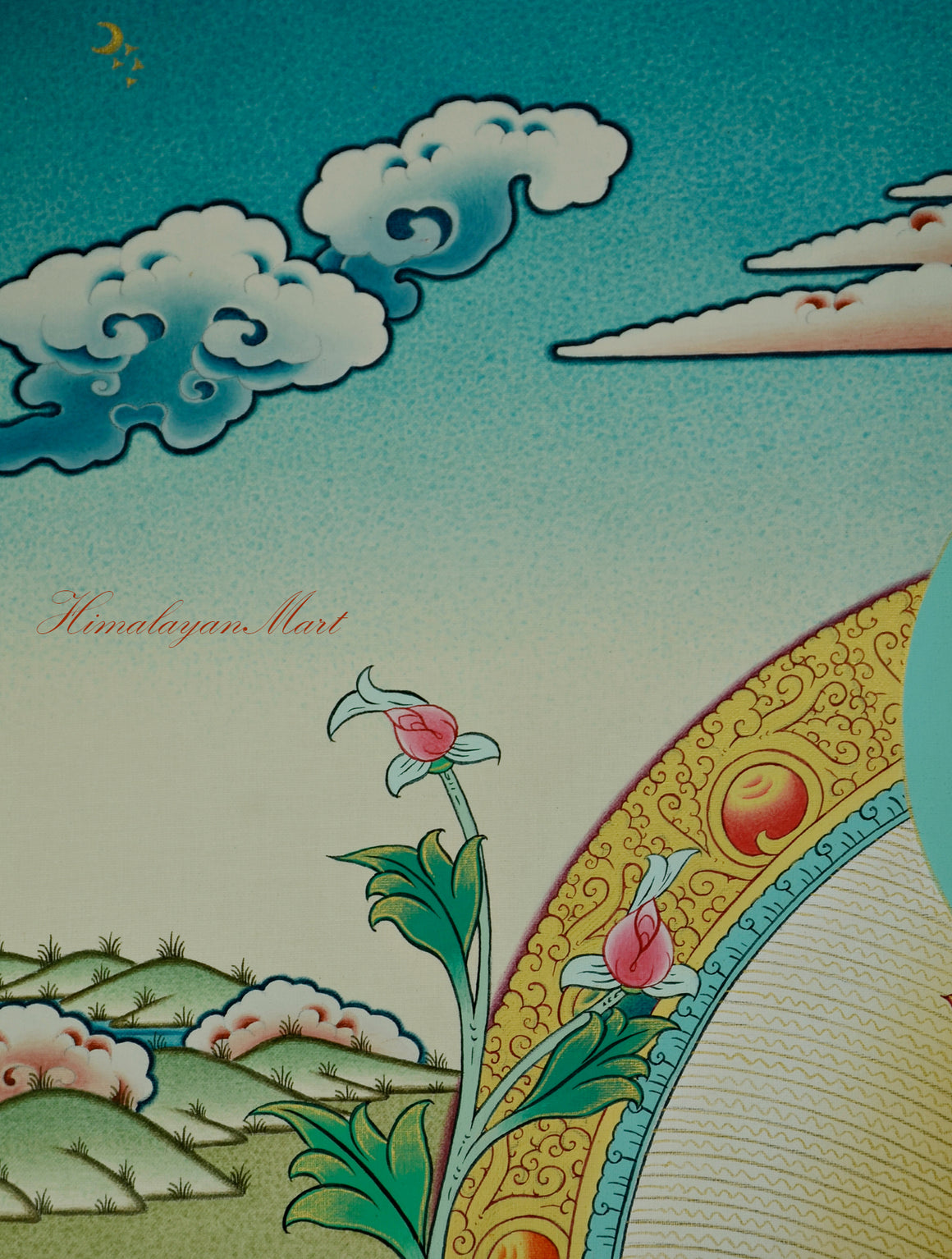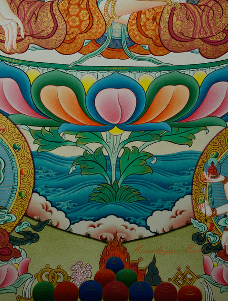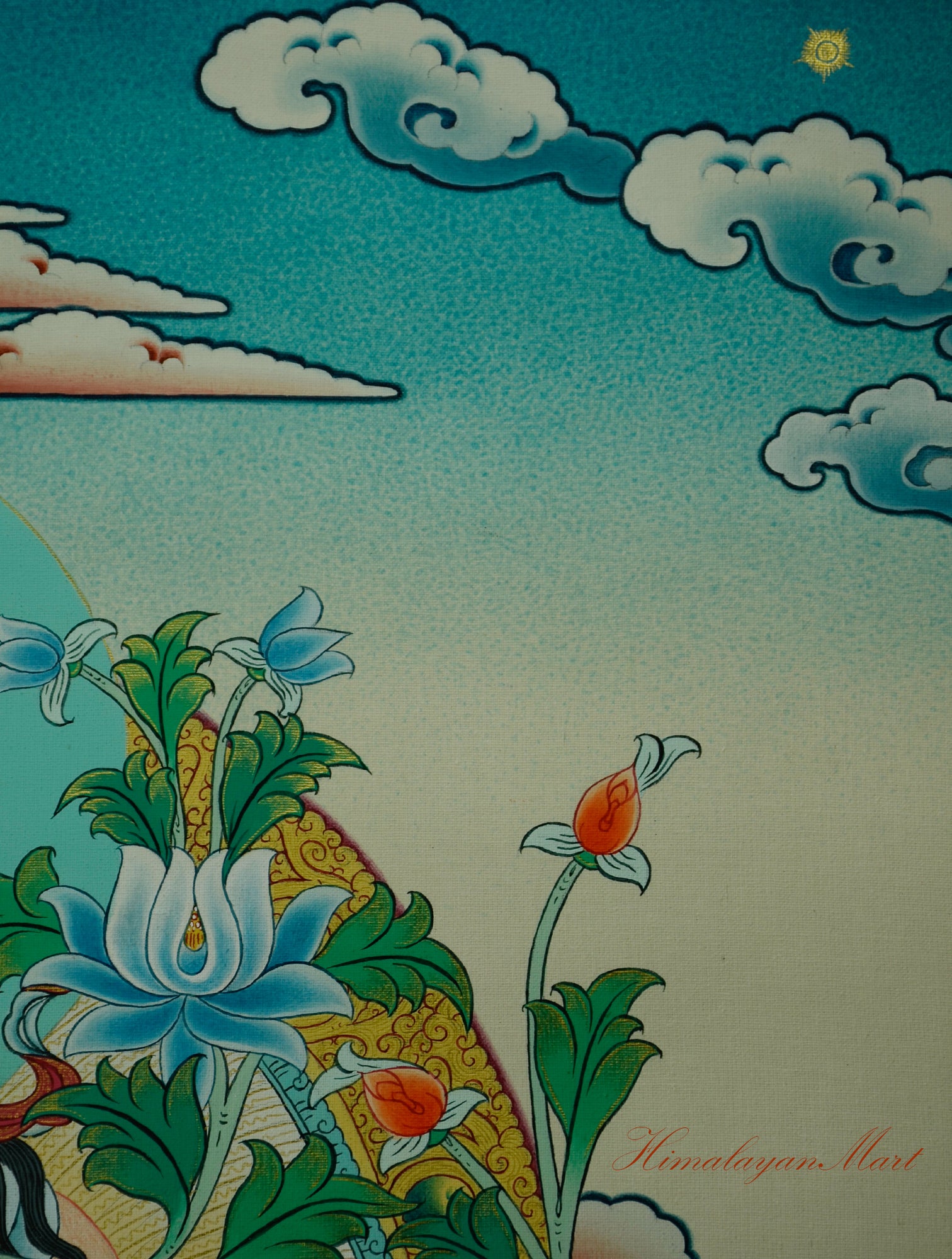 Consecration of Thangka Painting: We offer Thangka consecration by a qualified Buddhist monk or lama upon request. This sacred ritual blesses the painting with spiritual energy, pure intention, and lineage connection. A consecrated Thangka brings peace, clarity, and compassion to your meditation or sacred space. It helps deepen mindfulness, strengthen devotion, and enhance spiritual focus during practice. Please request consecration at the time of purchase for proper arrangement. Once blessed, the Thangka carries deeper meaning and sacred presence. When paired with silk brocade framing, it becomes a complete spiritual support. This service enhances its energy, beauty, and spiritual value with tradition and care.